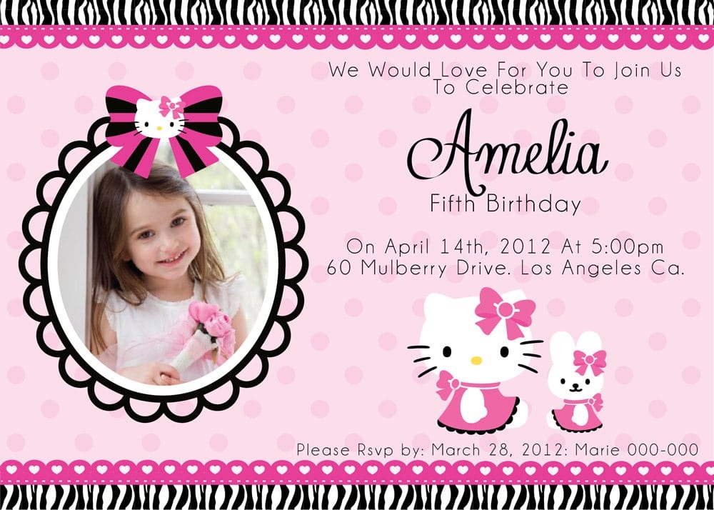 When planning your party, be sure to include important details such as the date, time, location, and any special instructions for your guests. You can also add a cute Hello Kitty-themed phrase or quote to tie in with the theme of the party. Don’t forget to include RSVP information so that you can get an accurate count of attendees.