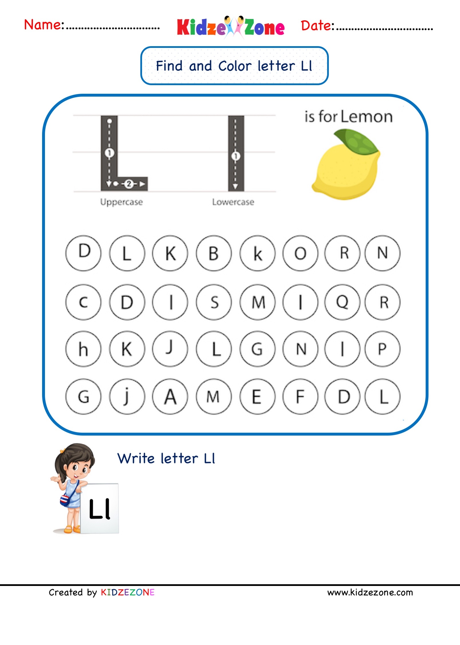 Download and Print letter l worksheets for preschool Listed below