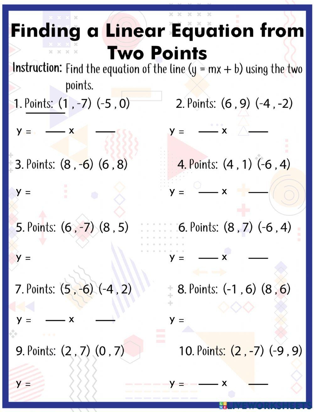 Another type of problem on these worksheets involves graphing linear equations. Students are given an equation and asked to plot the line on a coordinate plane. This visual representation helps reinforce the relationship between the equation and its graph. It also allows students to see how changes in the slope or y-intercept affect the position of the line.