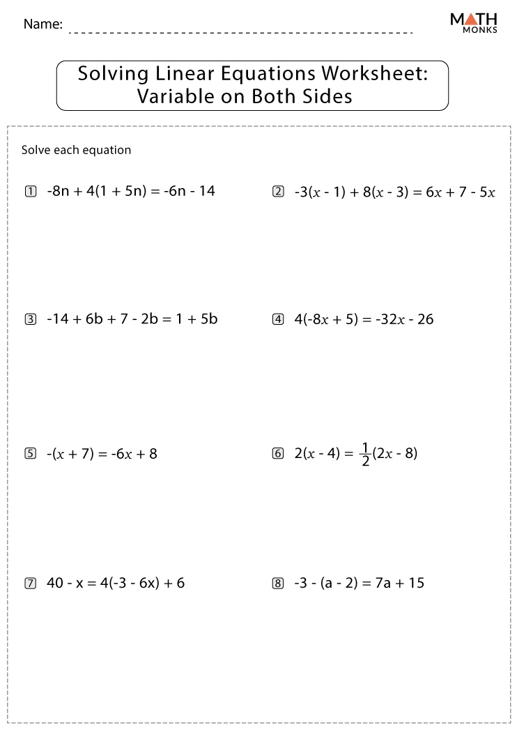 Linear equations are an essential topic in mathematics that students learn at various grade levels. To help students practice and master this concept, linear equations worksheets are a valuable resource. These worksheets provide a range of problems for students to solve, helping them develop their understanding and skills in solving linear equations.