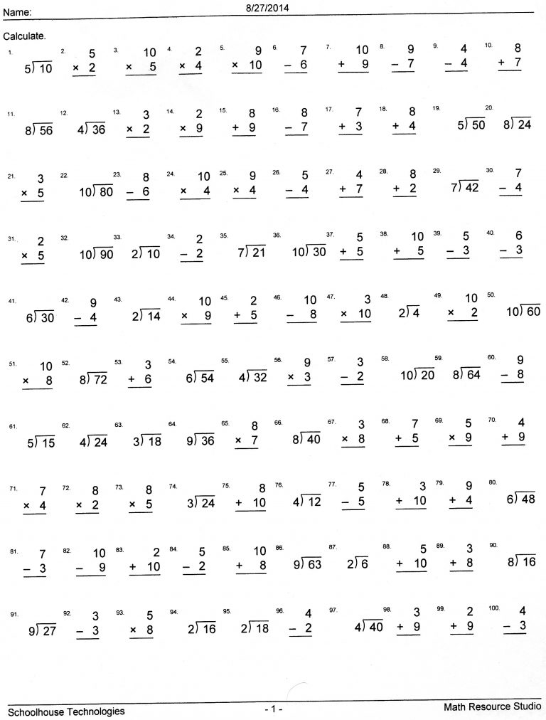 Math facts practice worksheets are essential tools for students to master basic arithmetic skills. These worksheets provide a structured way for students to practice and reinforce their knowledge of addition, subtraction, multiplication, and division facts. By regularly completing these worksheets, students can improve their mental math abilities and build a strong foundation for more advanced mathematical concepts.