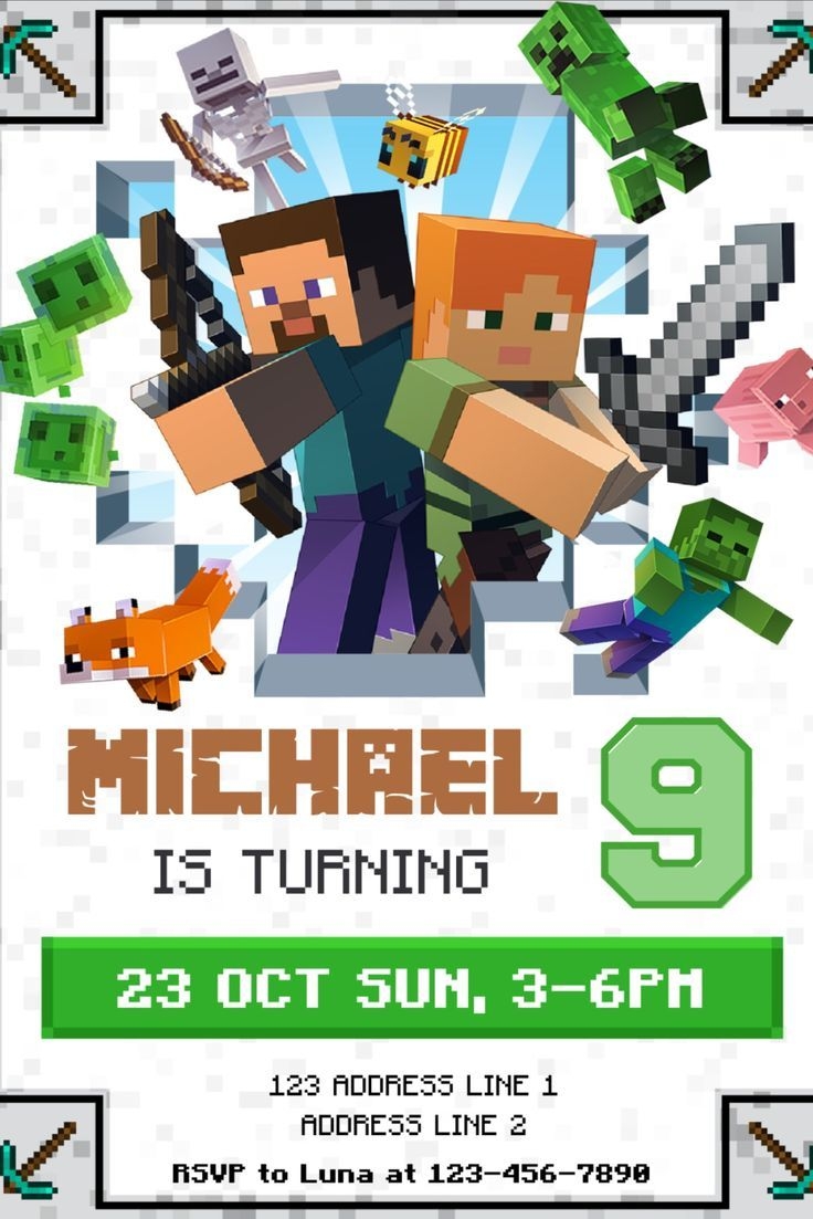Setting the tone for your child’s birthday party starts with the invitation. Our Minecraft birthday invitation template is the perfect way to get guests excited for a fun-filled day of mining, crafting, and building in the virtual world of Minecraft. With vibrant colors and iconic Minecraft elements, this template is sure to impress both the birthday child and their guests.