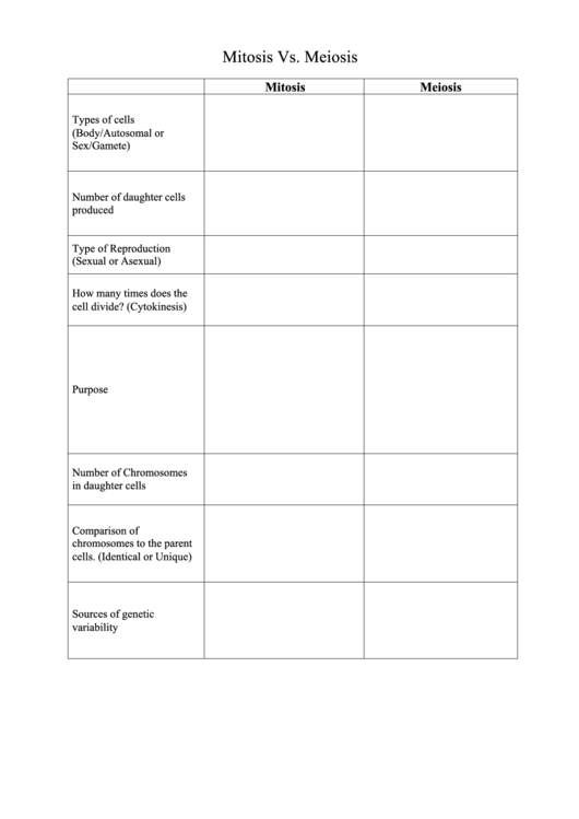 By completing mitosis vs meiosis worksheets, students can solidify their knowledge of cell division and prepare for exams or assessments. These worksheets also serve as valuable tools for teachers to assess students’ understanding and provide feedback on areas that may need further clarification.