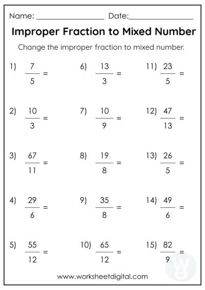 These worksheets often include a mix of simple and more complex mixed numbers to challenge students at different levels. By practicing converting mixed numbers to improper fractions, students can improve their understanding of fraction concepts and develop their problem-solving skills. It also helps them become more comfortable working with fractions in various mathematical contexts.