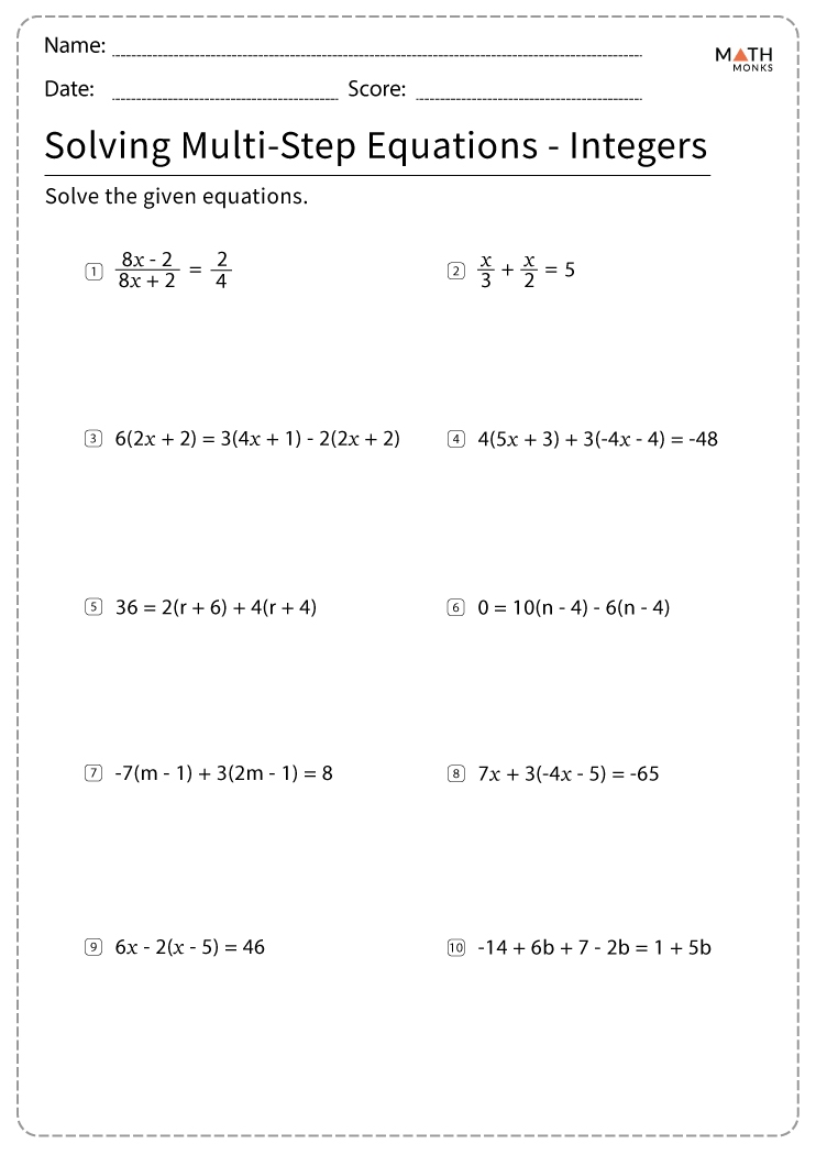 Multi step equations can be challenging for students to grasp, as they require multiple steps to solve. One effective way to help students practice and master this concept is through the use of worksheets. These worksheets provide a structured format for students to work through various multi step equations, allowing them to build their skills and confidence in solving these types of problems.