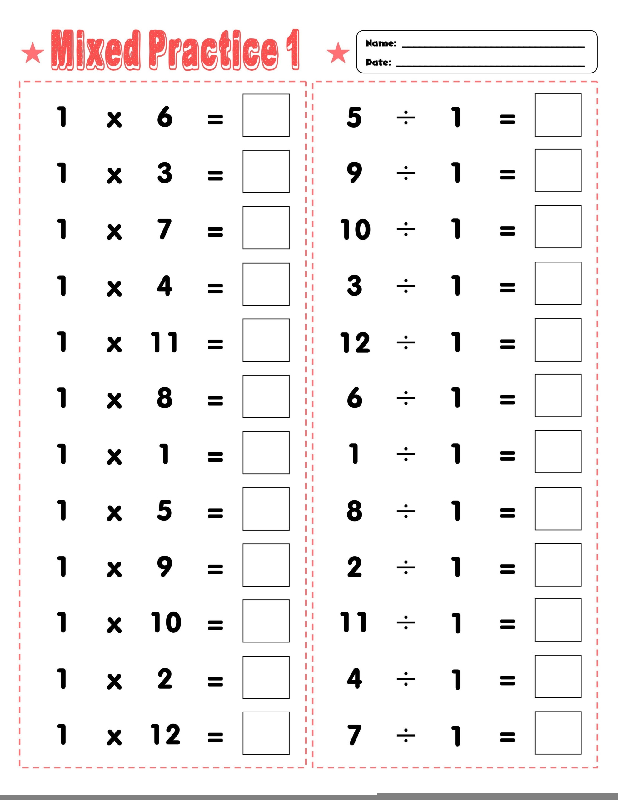 Multiplication And Division Worksheet