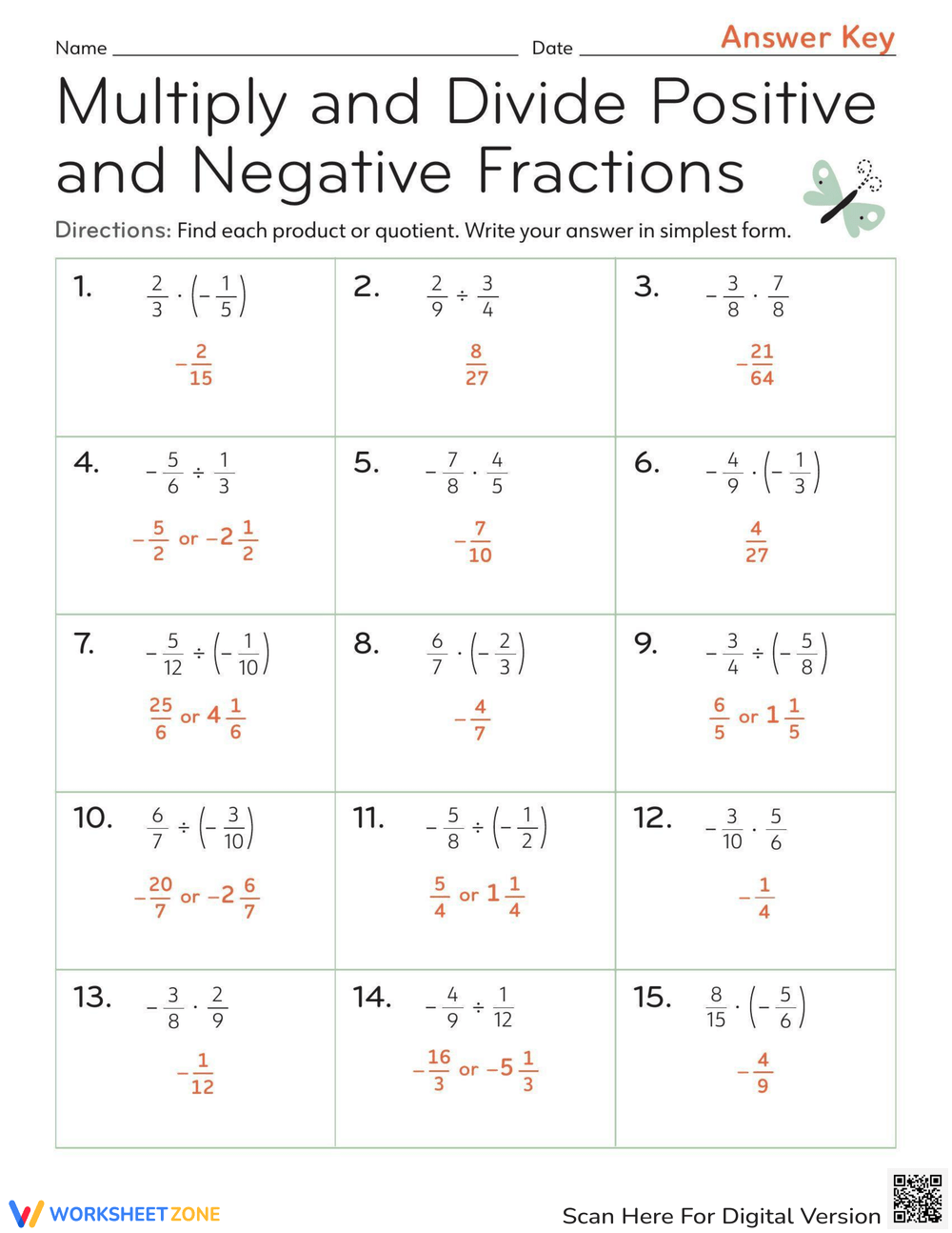 Multiply And Divide Positive And Negative Mixed Numbers Worksheet