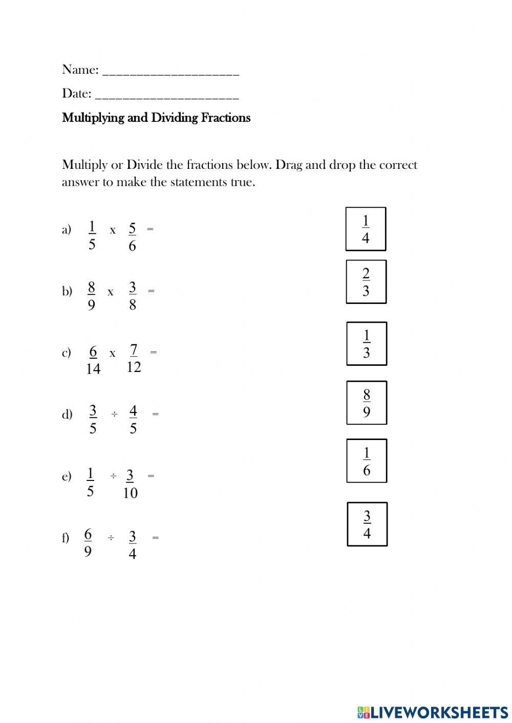 Multiplying Dividing Fractions Worksheet