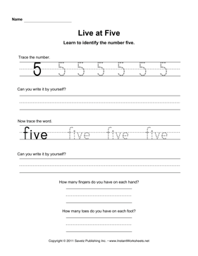 In addition to counting exercises, number 5 worksheets often include activities that involve writing the number 5. Children can practice tracing and writing the number multiple times to improve their handwriting skills and reinforce their understanding of how the number is written.