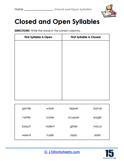 Open and Closed Syllables Worksheets