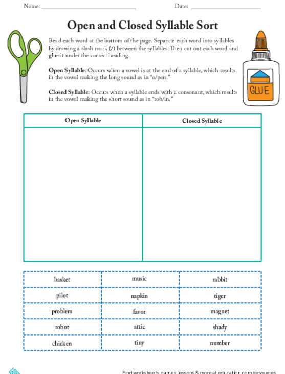 One common type of worksheet for practicing open and closed syllables is to have students identify whether a given syllable is open or closed. This can involve looking at the word as a whole and determining the vowel-consonant pattern. Students can then circle or highlight the correct answer.