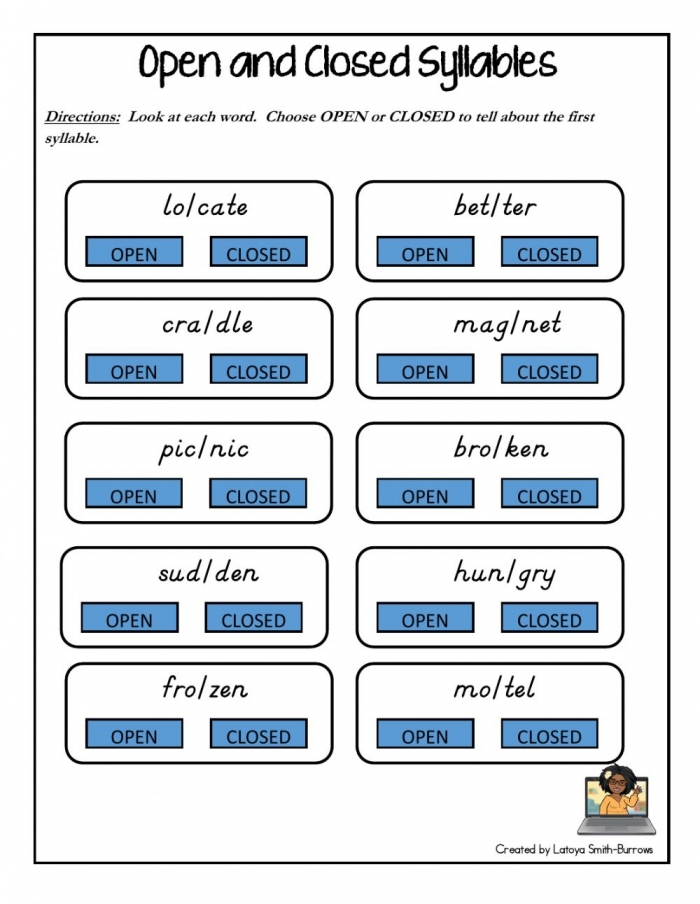 Worksheets can be a valuable tool for both teachers and students when learning about open and closed syllables. They provide a hands-on way to practice and reinforce these concepts, leading to improved reading and spelling skills.