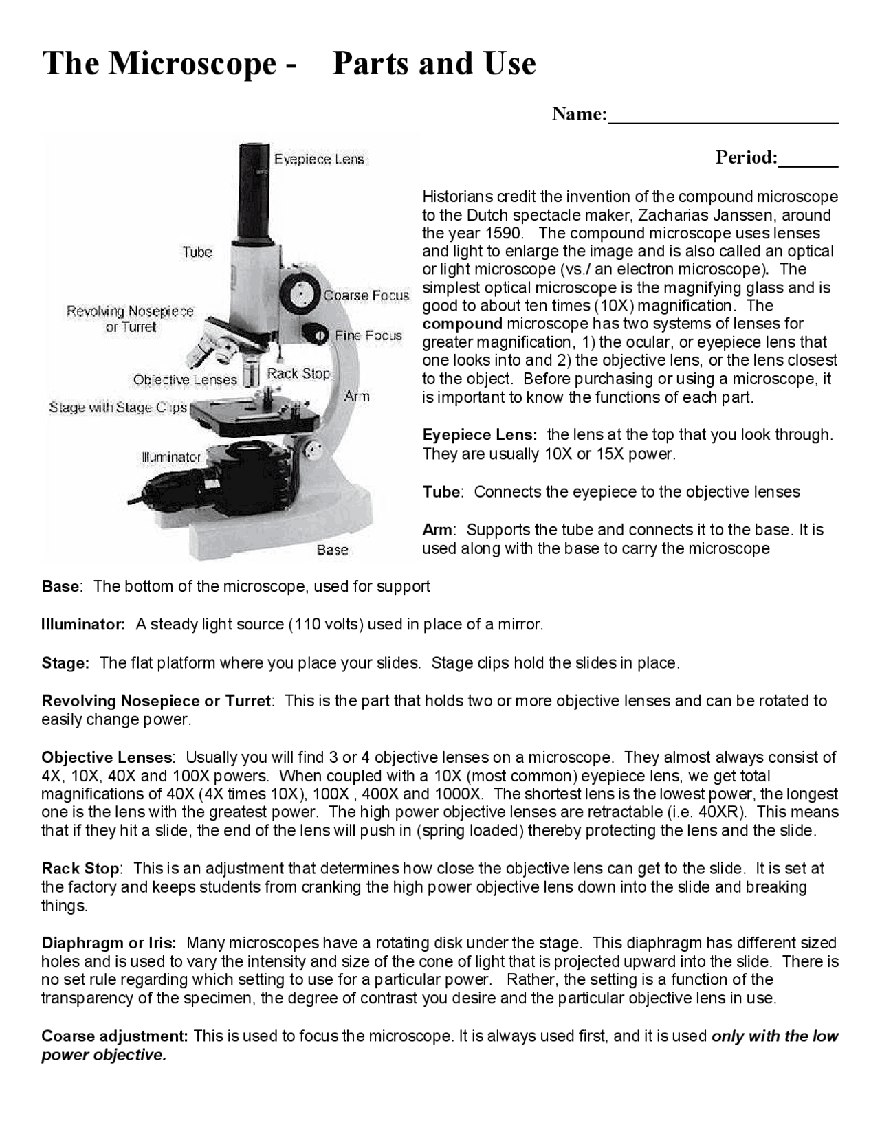Download and Print parts of a microscope worksheet Listed below