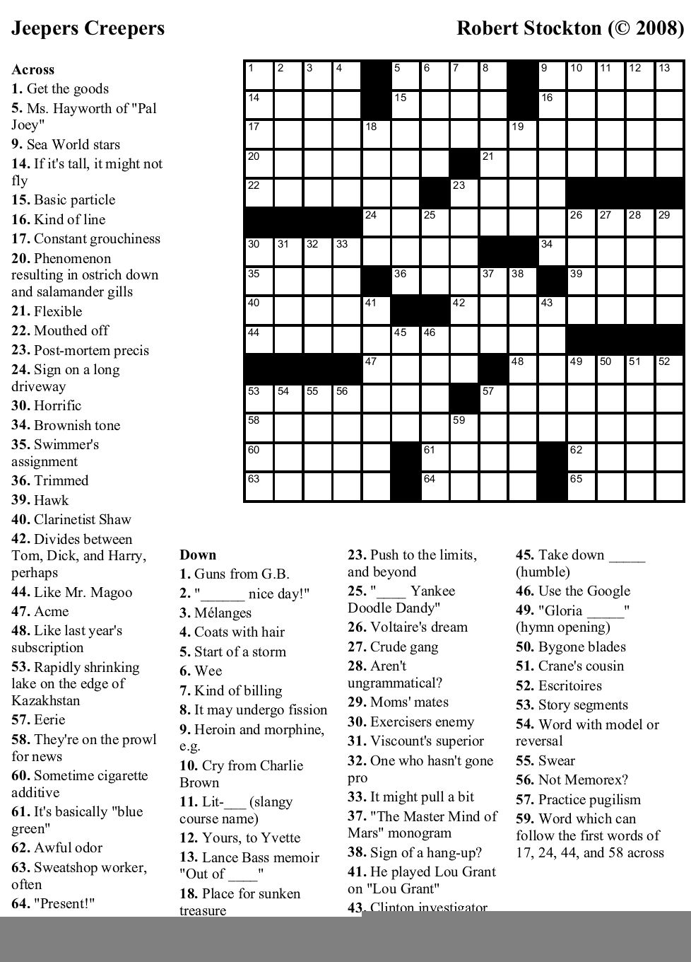 Printable Crossword Puzzles Pop Culture Printable Crossword Puzzles