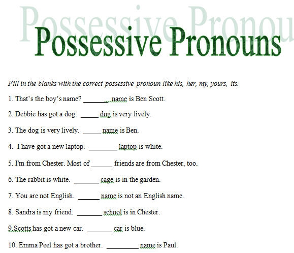 possessive pronouns worksheet