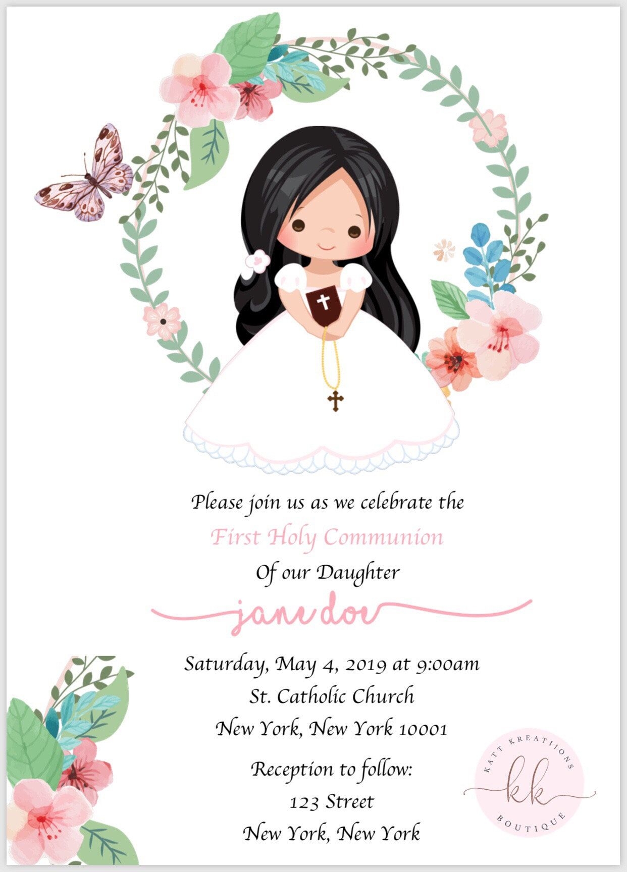 When selecting a template for your child’s first communion invitations, it’s important to consider the theme of the event. If you are planning a more traditional ceremony, you may want to choose a template that features religious imagery and elegant fonts. On the other hand, if you are going for a more casual and fun celebration, you can opt for a template with bright colors and playful designs.