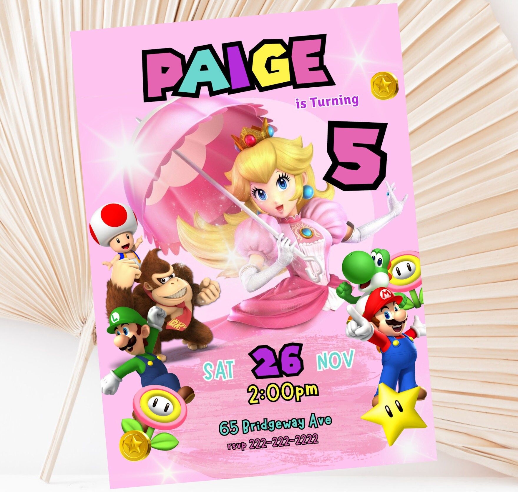 Each template features vibrant colors, elegant fonts, and charming illustrations of Princess Peach herself. Whether you prefer a classic design or a more modern twist, there’s a template to suit every style. From castle backgrounds to sparkling tiaras, these templates capture the essence of a fairy-tale princess party.
