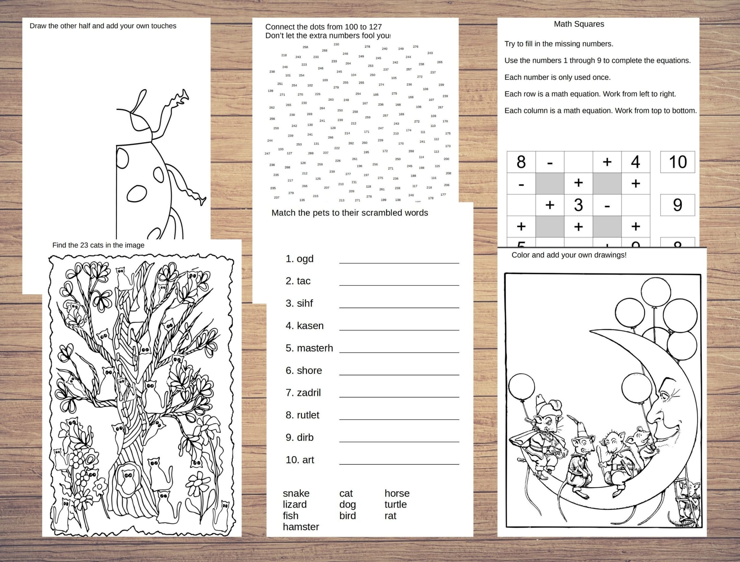 100 Printable Activities Kids Age 5 7 Coloring Hidden Image Math
