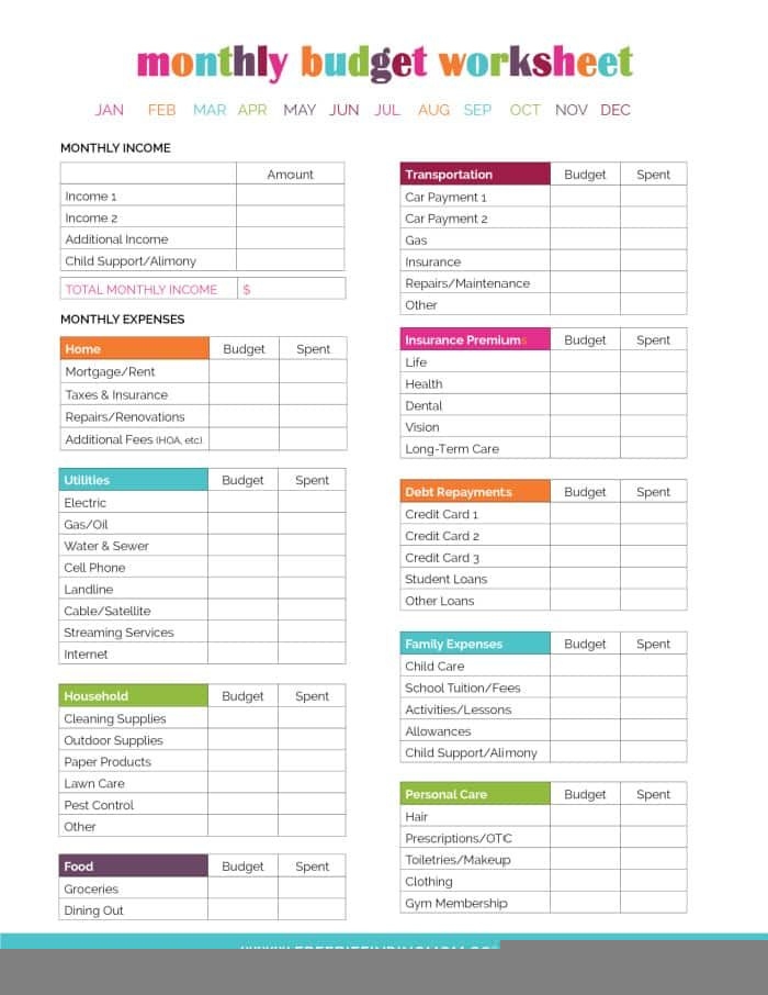 Free Household Budget Worksheet Printable Budgeting Worksheets
