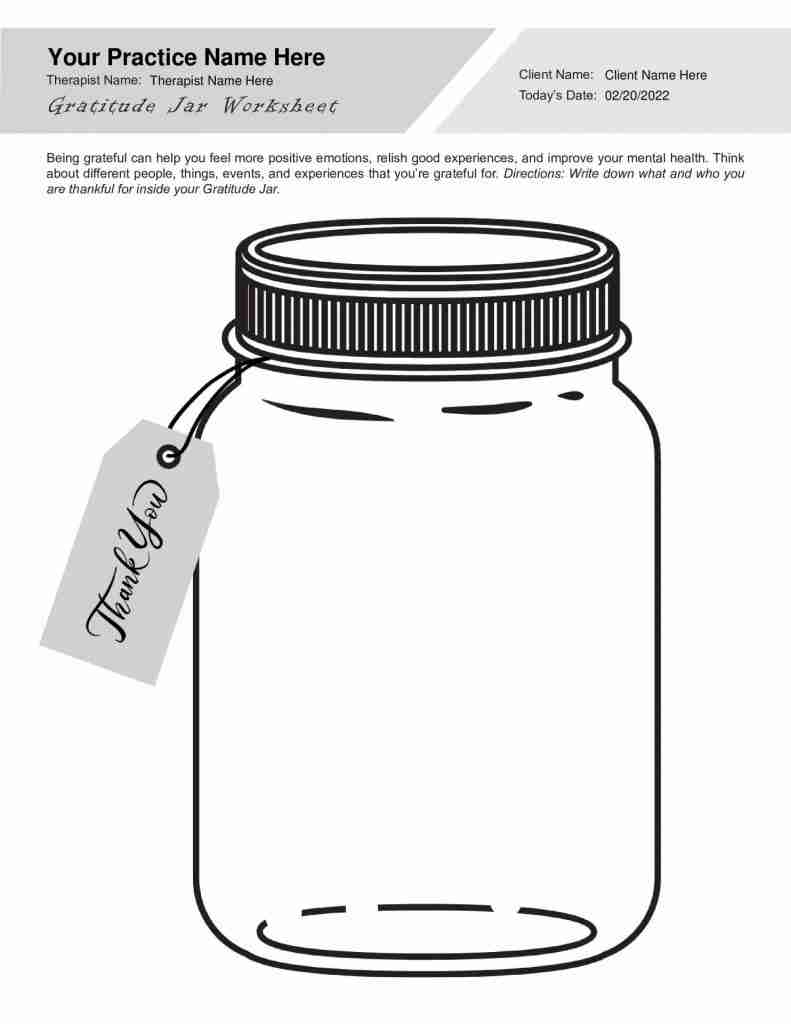 A printable gratitude jar worksheet typically includes sections for writing down daily or weekly reflections of gratitude. This can include prompts such as “Today I am grateful for…” or “One thing that made me smile today was…”. By filling out this worksheet regularly, we can build a habit of focusing on the positive aspects of our lives and train our minds to see the good in every situation.
