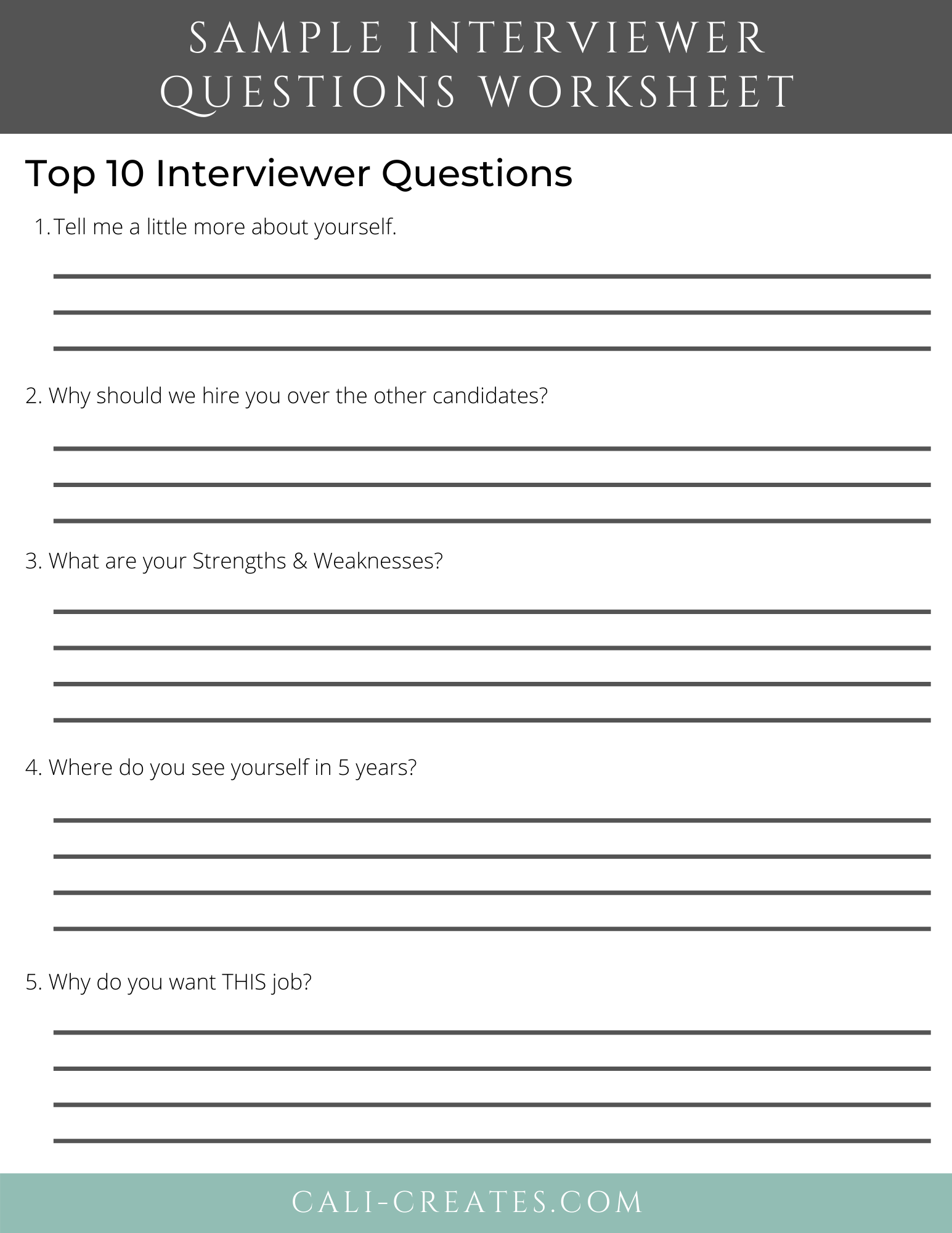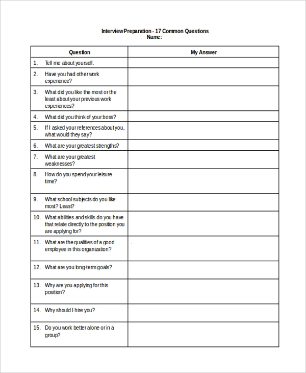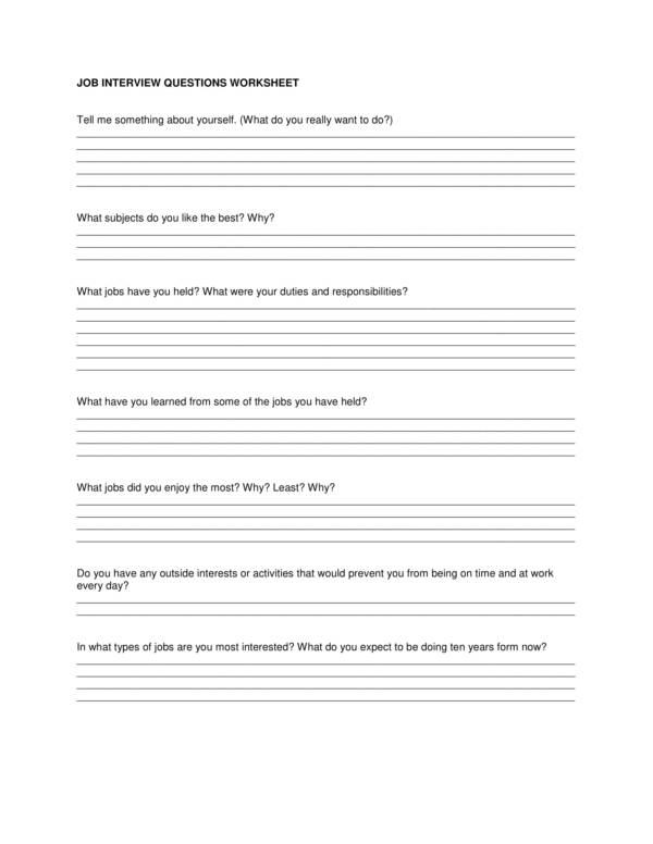 Preparing for a job interview can be a daunting task, but having a printable interview questions worksheet can help you feel more confident and prepared. This handy tool allows you to organize your thoughts and practice your responses to common interview questions. By using a worksheet, you can ensure that you cover all the key points you want to make during the interview.