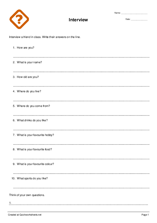 Printable Interview Questions Worksheet