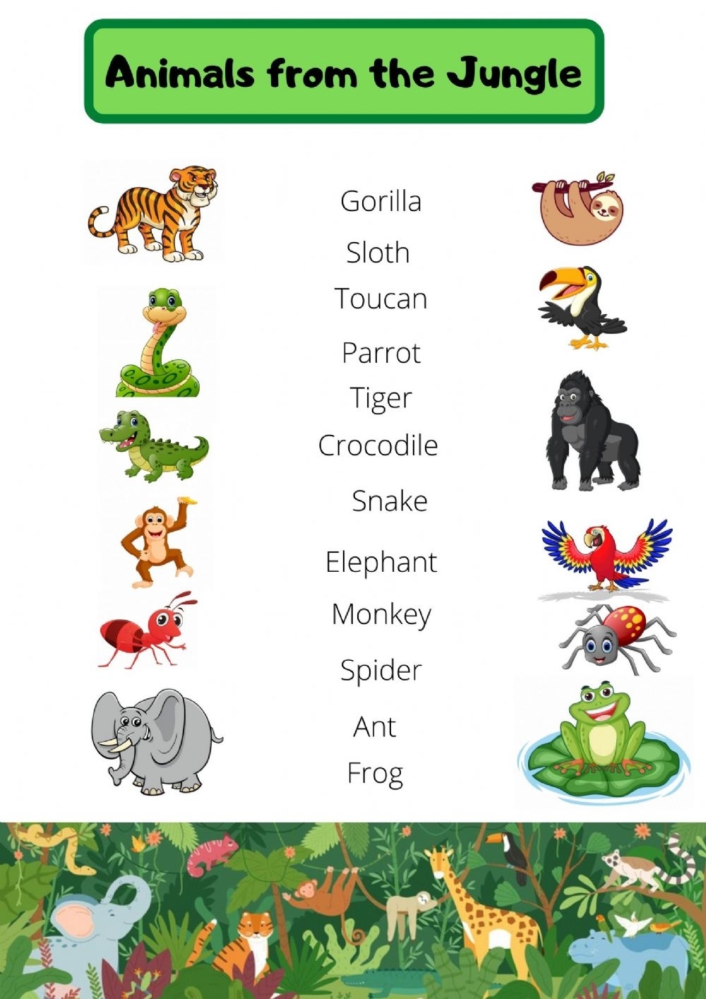 One of the most popular jungle worksheets for preschool is the animal matching game. Children are tasked with matching the jungle animals to their corresponding names or silhouettes. This activity not only helps in improving their memory and concentration but also introduces them to the different animals that live in the jungle.