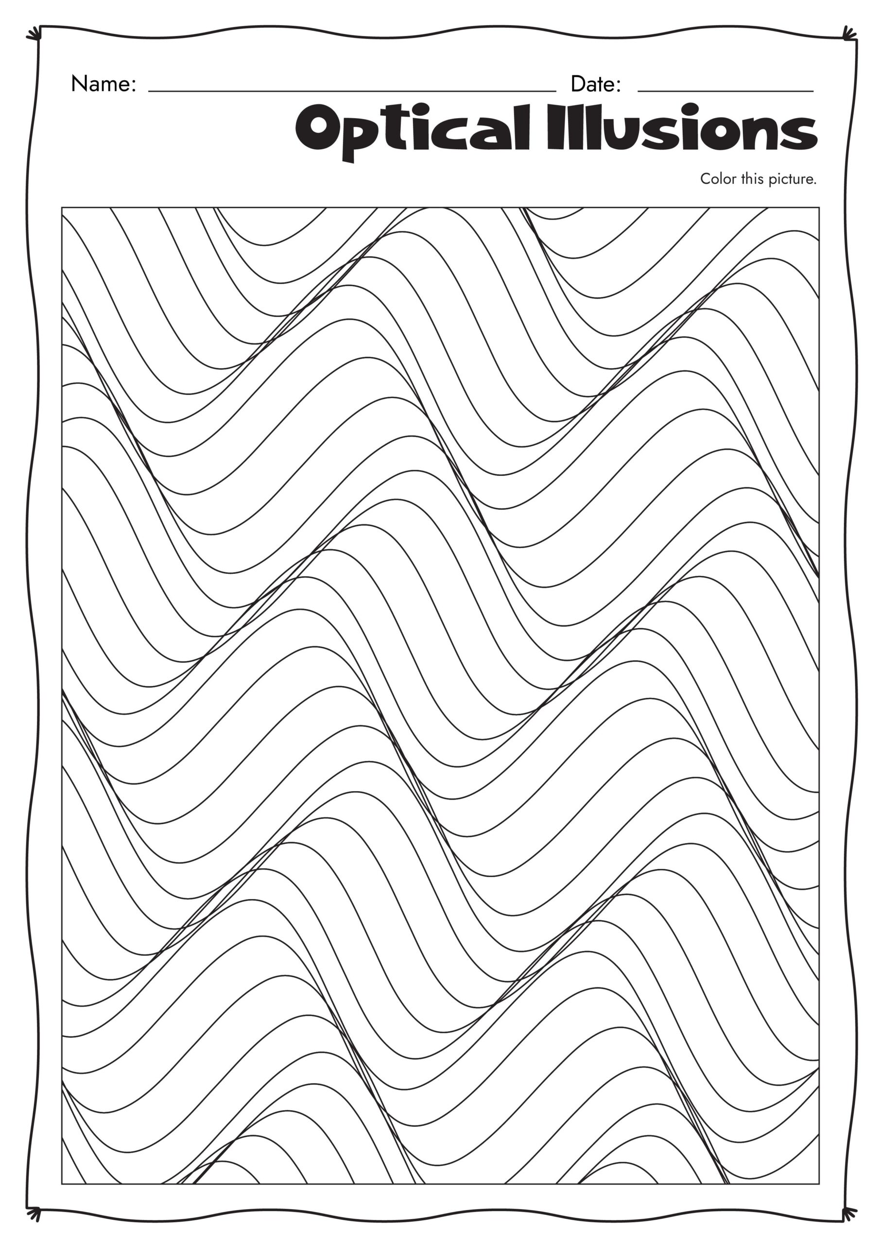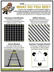 Teachers can use printable optical illusions worksheets as part of lessons on perception, psychology, or even art. They can be incorporated into lesson plans for various subjects and grade levels, providing a versatile resource for educators. Parents can also use these worksheets at home to engage their children in a fun and educational activity that stimulates their cognitive skills.