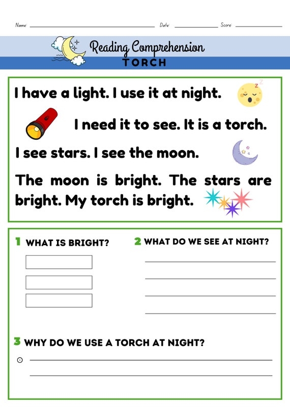 20 FREE Kindergarten Reading Comprehension Printable Free