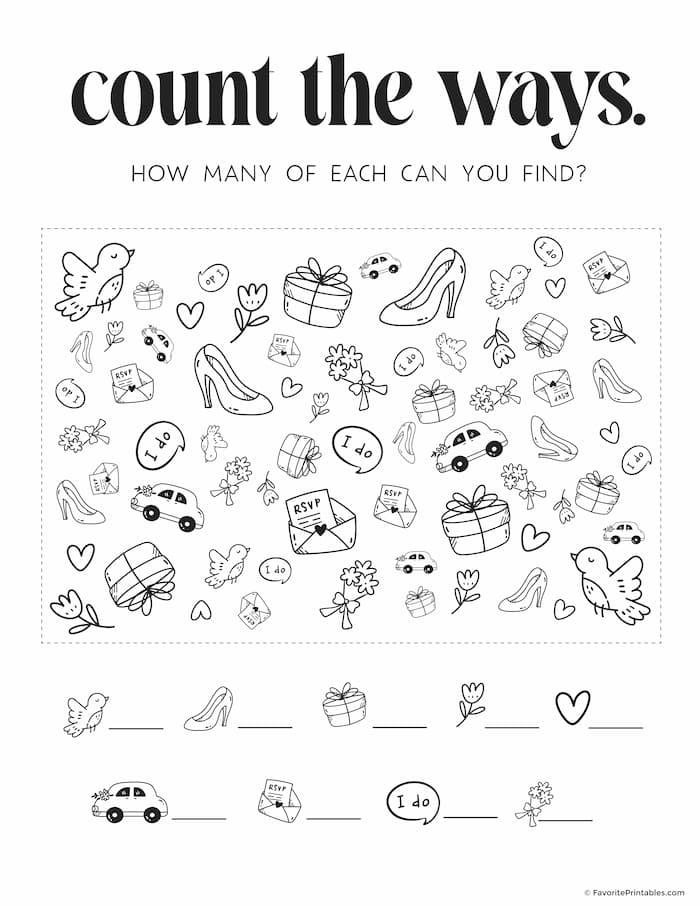 In addition to coloring pages and scavenger hunts, you can also provide printable wedding-themed word searches and crossword puzzles for kids to enjoy. These activities are not only entertaining but also educational, helping kids improve their vocabulary and problem-solving skills while having fun at the same time.