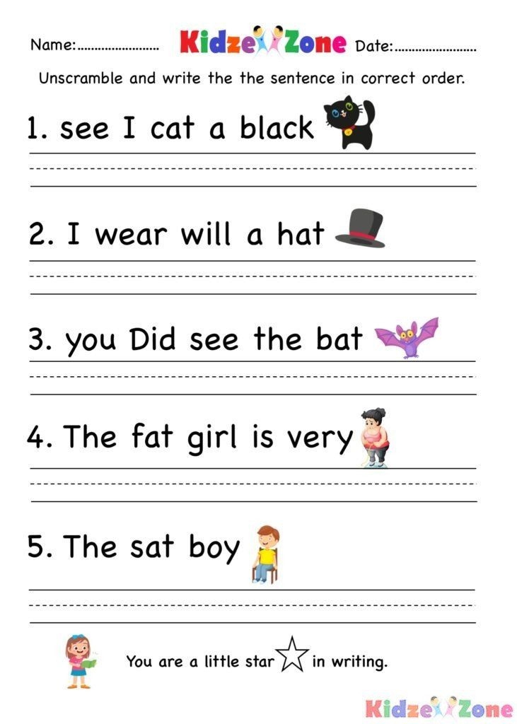 Free Printable Writing Sentences Worksheets For Kindergarten Writing