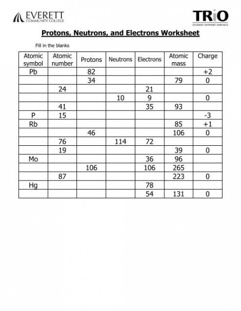 Protons Neutrons Electrons Practice Worksheet