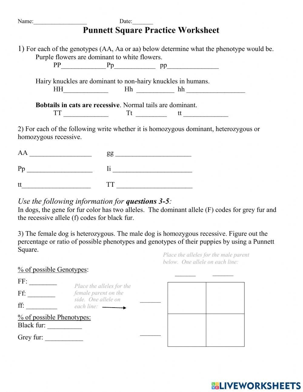 Punnett Square Practice Sheet Worksheets Library