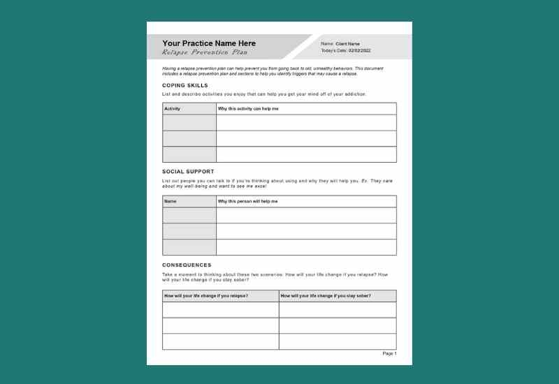 Relapse Prevention Plan Worksheet