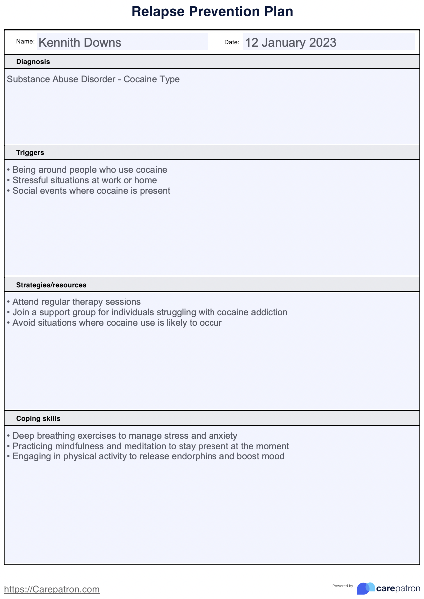 Relapse Prevention Planning Worksheet Example Free PDF Download