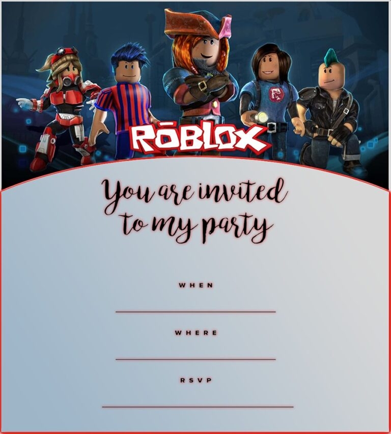 When choosing a Roblox birthday invitation template, look for one that features popular Roblox characters or elements, such as the iconic Roblox logo, avatars, or game controllers. You can also opt for a template that mimics the look of the Roblox game interface, complete with colorful buttons and text boxes. Personalize the template with your child’s name, age, party date, time, and location to create a one-of-a-kind invitation that will impress your guests.
