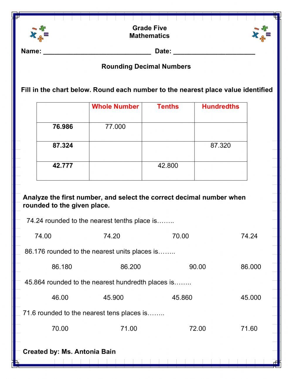 Rounding Decimals Worksheet For 5th Grade With Answer Key Free PDF