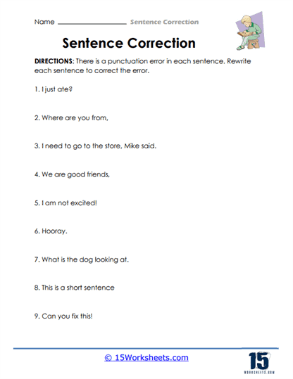 Sentence Correction Worksheets