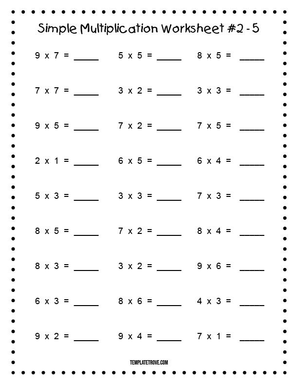 By providing students with simple multiplication worksheets, teachers can reinforce the basic principles of multiplication and help students build a strong foundation for more advanced math concepts. These worksheets are also a great way to assess students’ understanding of multiplication and identify areas where they may need additional support.