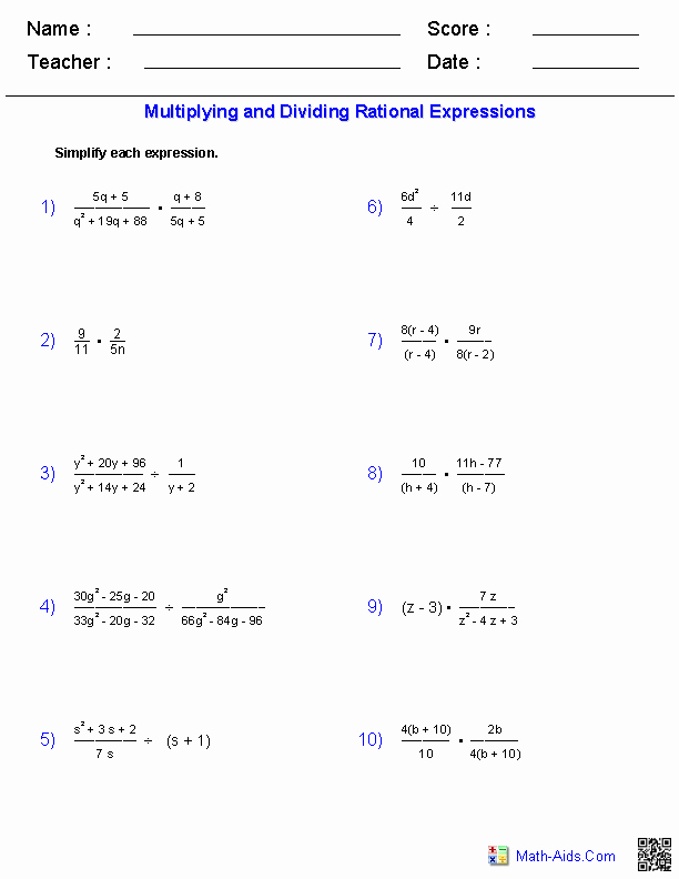 Simplifying Rational Expressions Worksheet