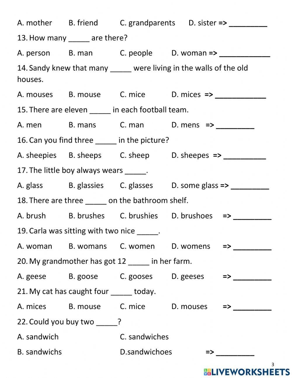A worksheet on singular and plural nouns can help students practice identifying and using these types of nouns correctly. By engaging in activities that require them to distinguish between singular and plural forms, students can improve their grammar skills and enhance their writing abilities.