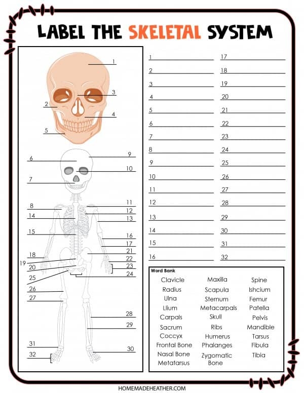 One common exercise found in skeletal system worksheets is labeling the bones of the body. Students are given a diagram of the skeletal system and must correctly identify and label each bone. This activity helps students understand the names and locations of the major bones in the body, such as the skull, ribs, spine, and limbs. It also reinforces the importance of each bone in providing support and protection to the body.