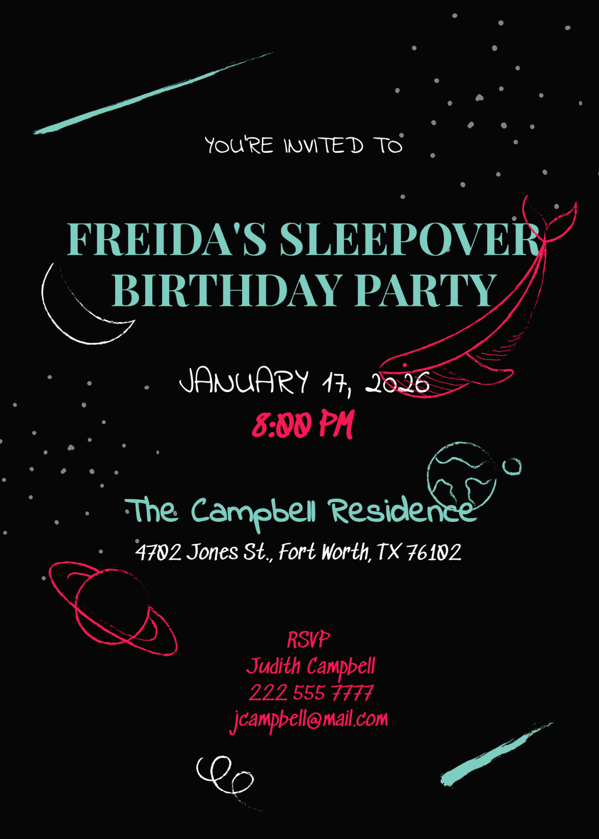 When customizing your sleepover invitation template, be sure to include all the important details, such as the date, time, location, and any special instructions for your guests. You can also add a personal message to let your guests know how excited you are to have them join you for the sleepover.