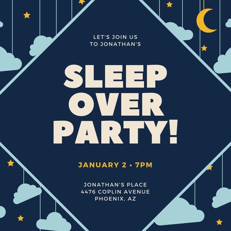 Whether you’re hosting a slumber party for your kids, a girls’ night in, or a birthday sleepover, our free templates will help set the tone for your event and get everyone excited to attend. You can customize the text, colors, and fonts to match your party theme and make your invitations truly one-of-a-kind.