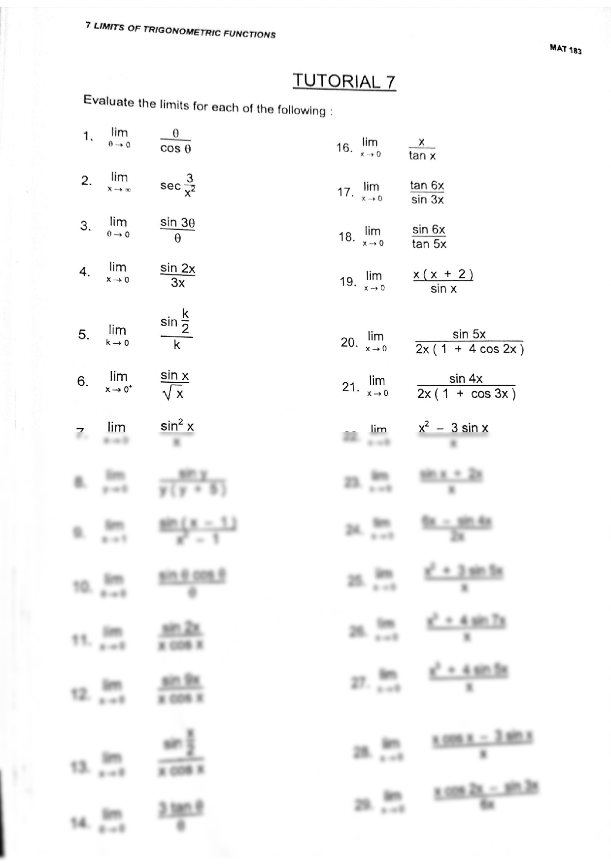 Trig Worksheet