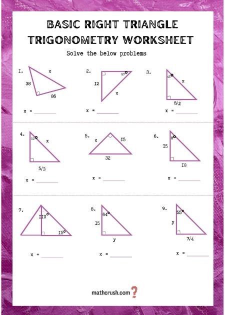 Trigonometry is a branch of mathematics that deals with the relationships between the sides and angles of triangles. It is a fundamental concept in geometry and is used in various fields such as physics, engineering, and architecture. To understand and practice trigonometry, students often use worksheets that contain a variety of problems and exercises to solve. These worksheets help reinforce the concepts learned in class and provide a means for students to practice their skills.