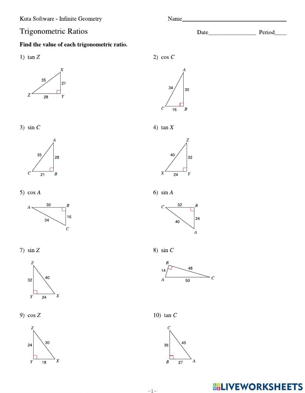 A trig worksheet usually consists of a series of problems that cover different aspects of trigonometry. These problems may involve calculating the lengths of sides of a triangle, finding missing angles, or solving trigonometric equations. The worksheet may also include word problems that require students to apply trigonometric concepts to solve real-life problems. By practicing these problems, students can develop a deeper understanding of trigonometry and improve their problem-solving skills.