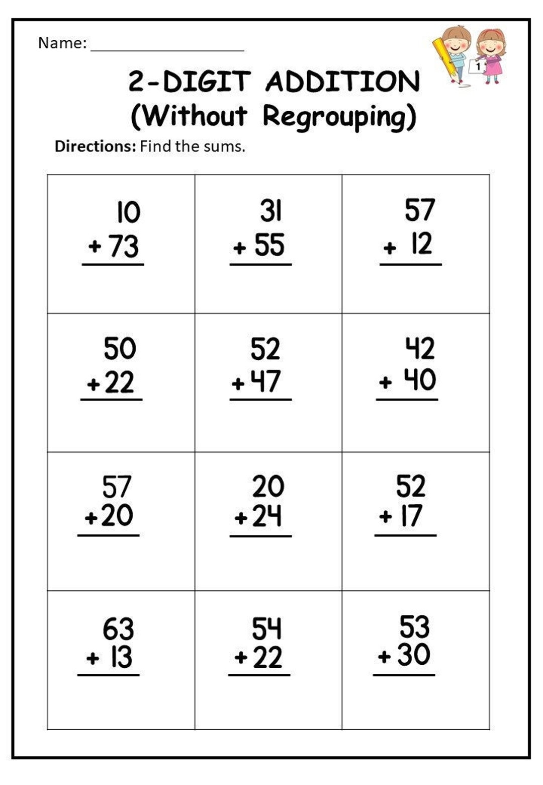 Two digit addition worksheets are a great way for students to practice their math skills in a fun and engaging way. These worksheets typically consist of problems where students are required to add two two-digit numbers together to find the sum. They are perfect for students who are just beginning to learn addition or for those who need extra practice.