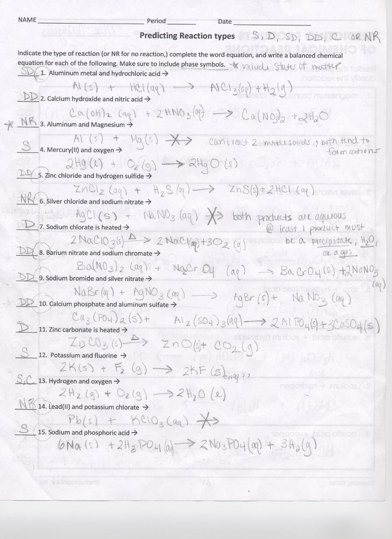 Overall, a worksheet on types of chemical reactions with answers can be a valuable tool for students to reinforce their knowledge and improve their skills in this area of chemistry.