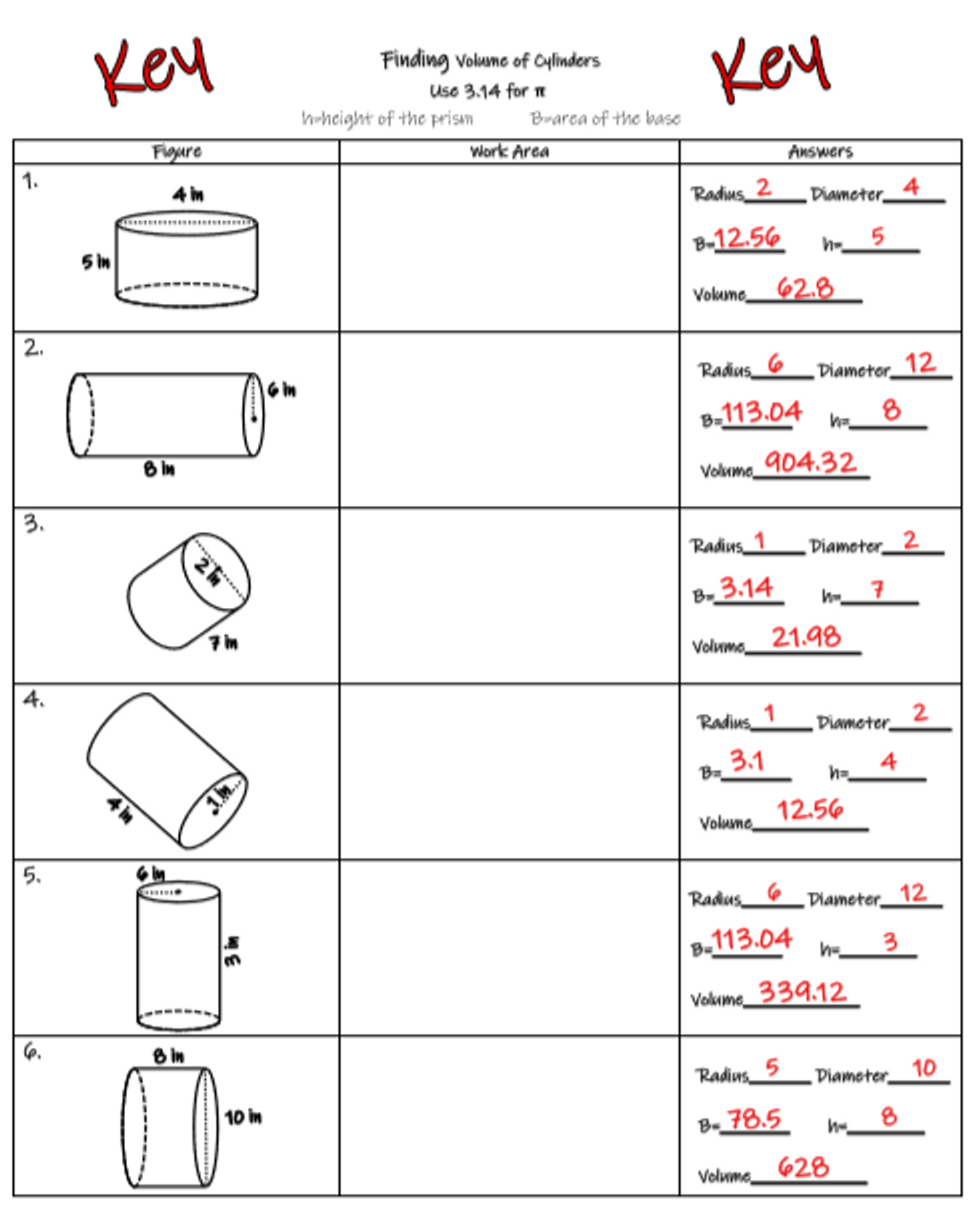In conclusion, worksheets on the volume of a cylinder are valuable tools for students to practice and reinforce their understanding of this important geometric concept. By working through problems that require them to calculate the volume of cylinders with different dimensions, students can improve their problem-solving skills and gain confidence in their ability to apply mathematical formulas. Practicing with these worksheets can help students prepare for tests and build a strong foundation in geometry.